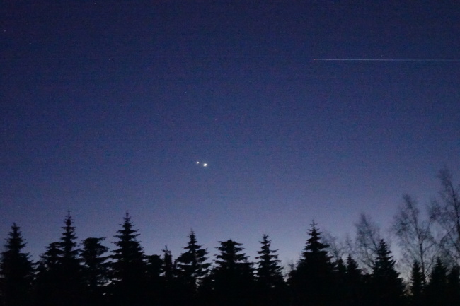 Astronomické jaro 1.března 2023 na Haničce. Konjukce planet Venuše a Jupiter.